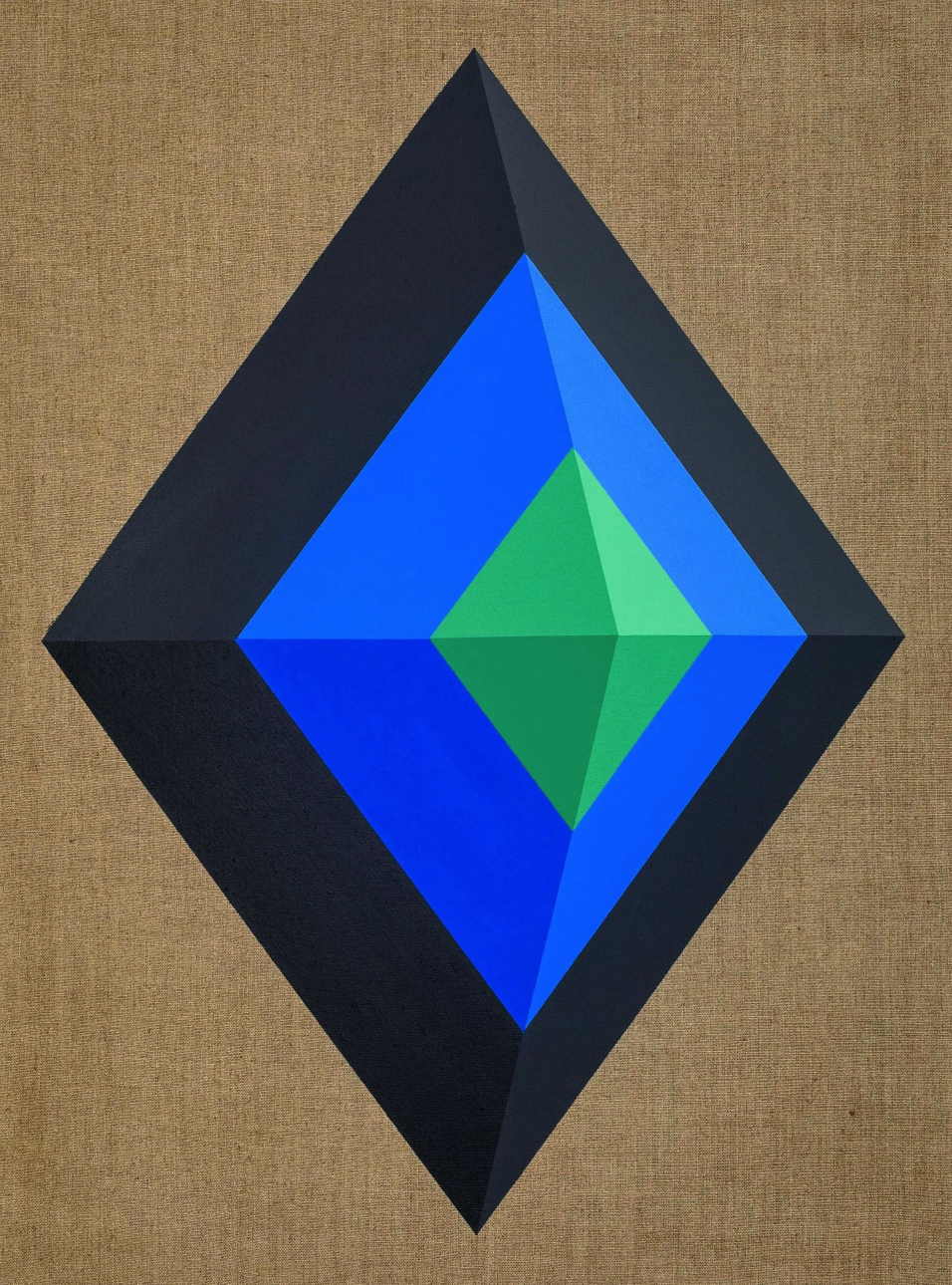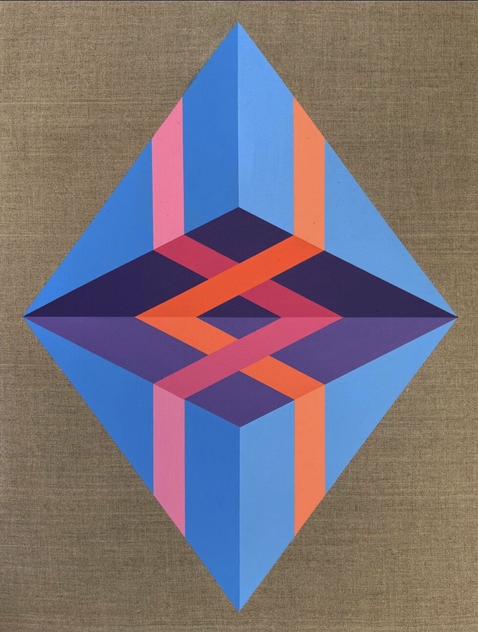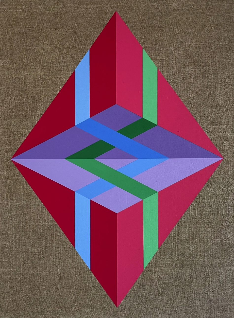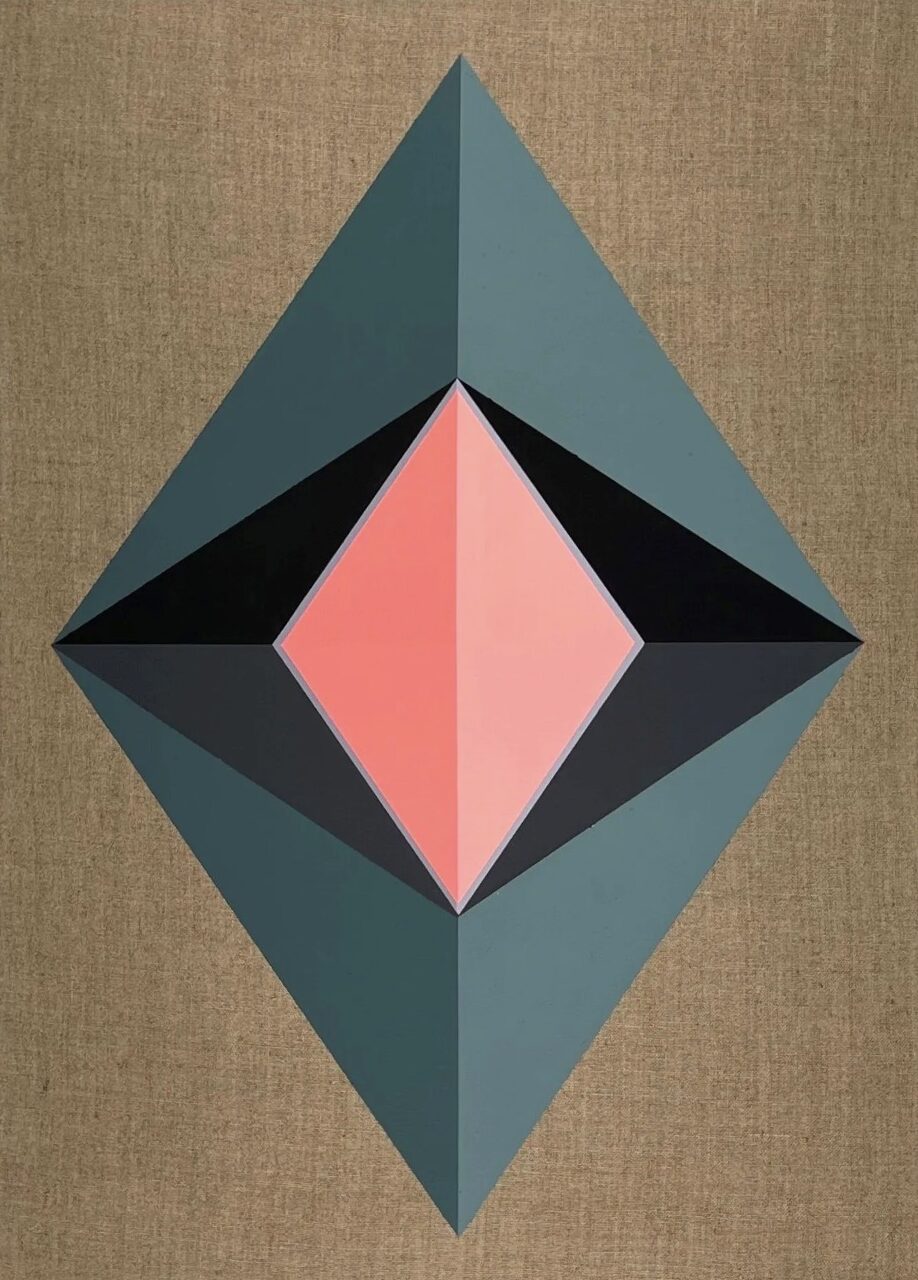 The op art artworks and diptych black and white paintings of Anna extraordinarily enough took me back home to South Africa to the Ndebele people and their traditional art. Whether it’s her abstract black and white or her illusive colour spectrum of her three dimensional diamonds and illusions that move outwards or inwards, from the colours to the innuendo of Africa, however nothing could possible be more remotely removed from her story of the origins and inspirations of her work. Her artworks appear simple and refined, with the illusion of expanse and creating an atmosphere of time and the universe. Like the cut diamond that draws one into the cool-levities of structure over time, and the outward looking into the cosmos. Her work was created with the skills of geometry and mathematics, and her choice of colours reveal the complexities of nature. It’s this combination of warmth and abstract that defines a whole new concept of Op art. Anna defines and describes her journey into the art world through the story of being raised in communist Poland. And the influences, structures and climate and how it affected her culturally, emphasising that life was manageable and straightforward, but because so much wasn’t possible at the time, and how the impossible became possible. She describes that she always had an inclination towards mathematics, geometry and music. It was whilst visiting Germany on holiday, that she discovered art for the first time, and the freedom of expression engulfed her. She desired nothing more than to feel this freedom.