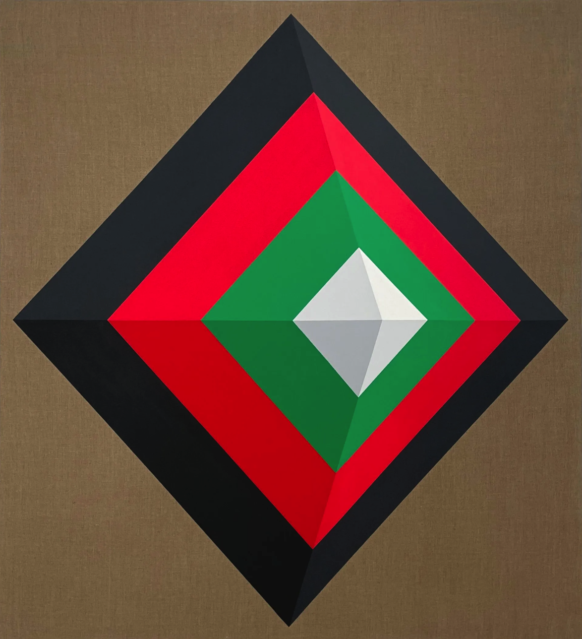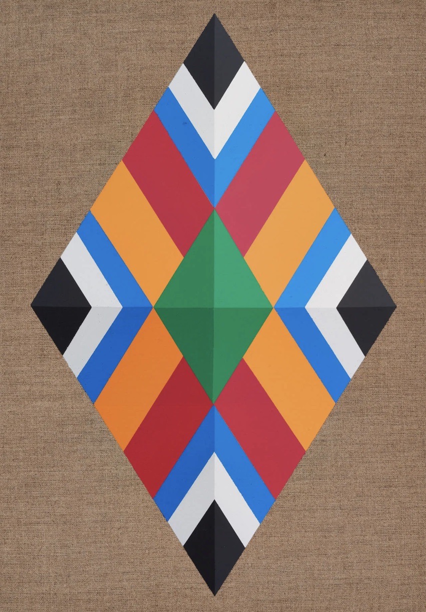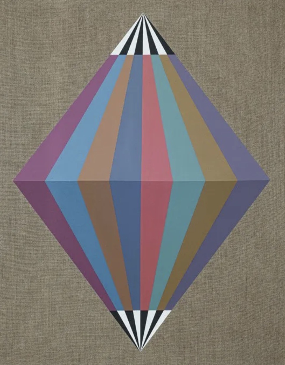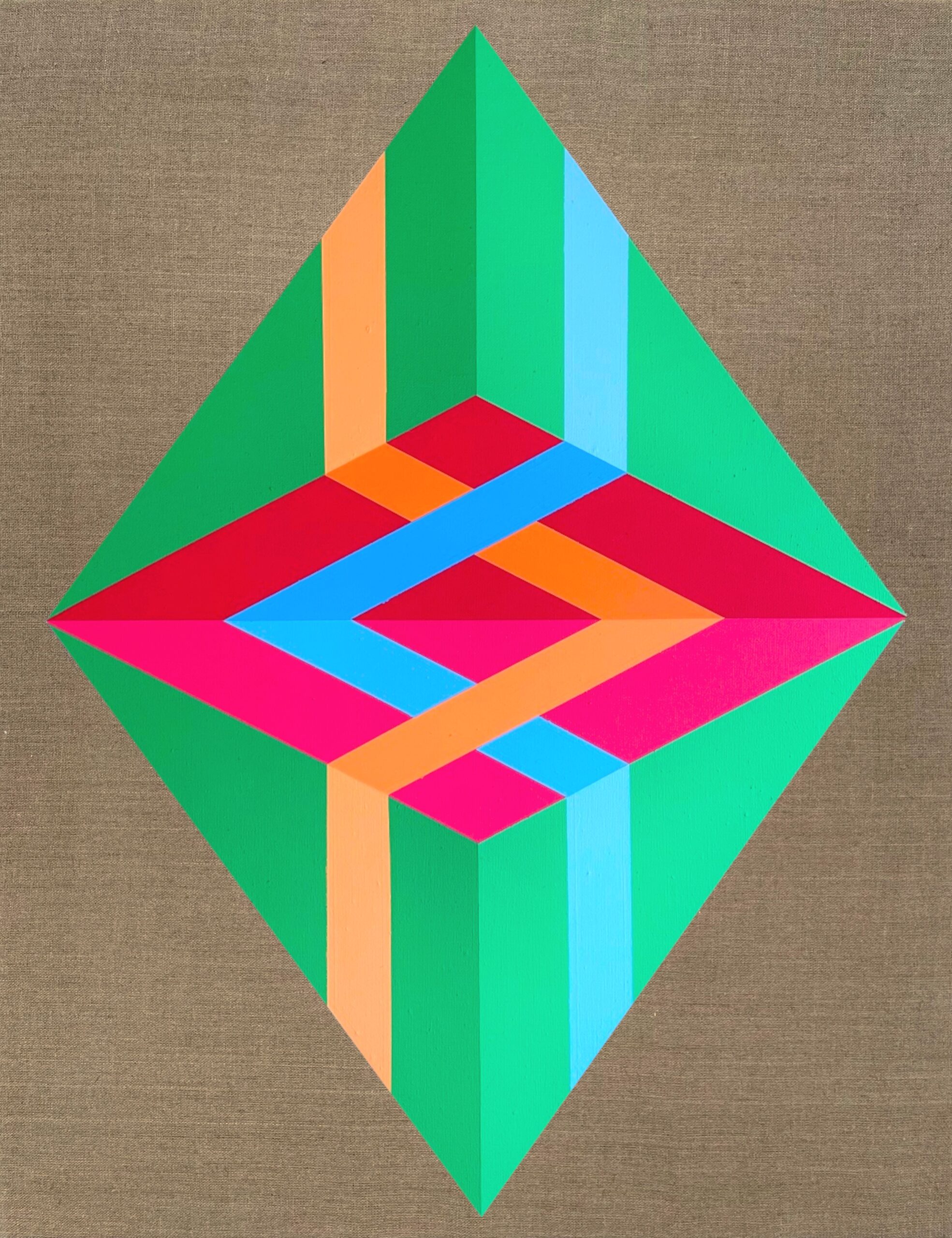 The op art artworks and diptych black and white paintings of Anna extraordinarily enough took me back home to South Africa to the Ndebele people and their traditional art. Whether it’s her abstract black and white or her illusive colour spectrum of her three dimensional diamonds and illusions that move outwards or inwards, from the colours to the innuendo of Africa, however nothing could possible be more remotely removed from her story of the origins and inspirations of her work. Her artworks appear simple and refined, with the illusion of expanse and creating an atmosphere of time and the universe. Like the cut diamond that draws one into the cool-levities of structure over time, and the outward looking into the cosmos. Her work was created with the skills of geometry and mathematics, and her choice of colours reveal the complexities of nature. It’s this combination of warmth and abstract that defines a whole new concept of Op art. Anna defines and describes her journey into the art world through the story of being raised in communist Poland. And the influences, structures and climate and how it affected her culturally, emphasising that life was manageable and straightforward, but because so much wasn’t possible at the time, and how the impossible became possible. She describes that she always had an inclination towards mathematics, geometry and music. It was whilst visiting Germany on holiday, that she discovered art for the first time, and the freedom of expression engulfed her. She desired nothing more than to feel this freedom.