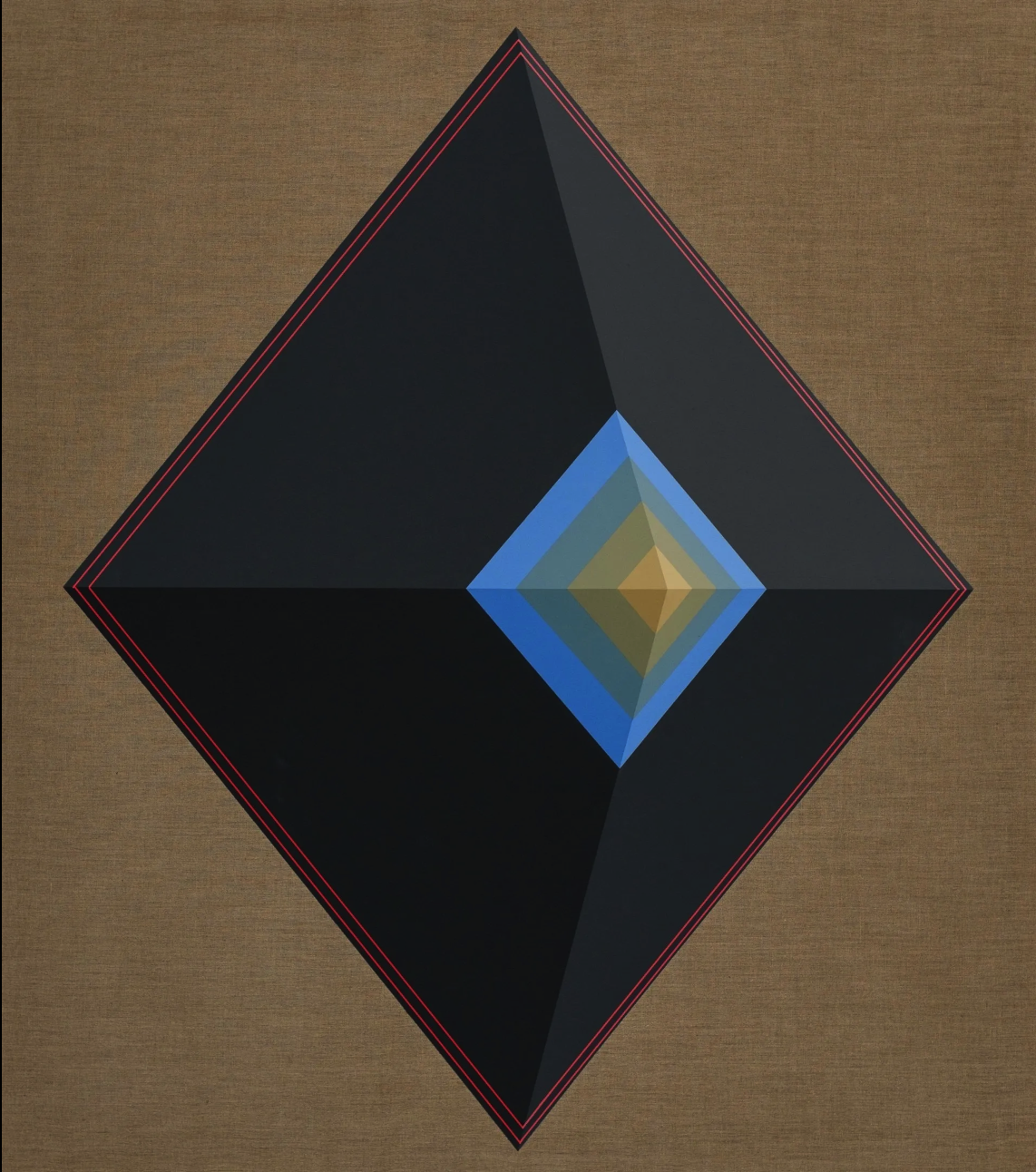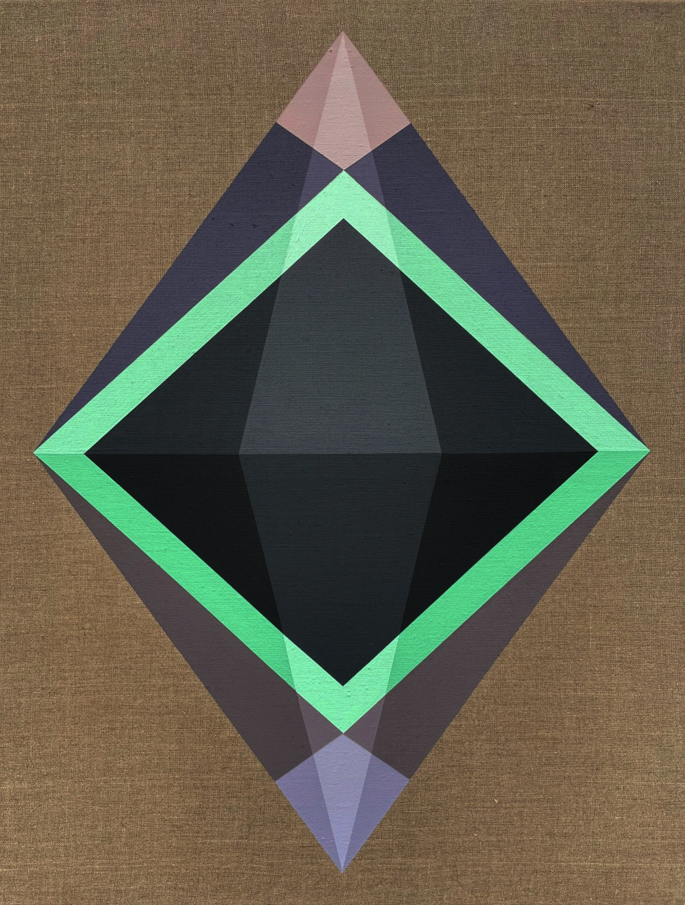 Working with the tutelage of Markus Lüpertz, then Director of the Art Academy, Anna learnt that the culture of the art industry, and what it involved emotionally, the hierarchies and policies of the institution. Besides the peer pressures, Anna continued her tutorials; she loved painting and ignored much of the establishment. Her Professor Mr. A. R. Penck and Mr. Anzinger encouraged her to persevere. She continued painting, and she shrugged, “It was good”. Then her mother died suddenly, it was a dramatic time, and in shock, she stopped painting for a year. When Anna picked up the paint brush again a year later, her style shifted; she didn’t know how, but she describes it as an unconscious moment, in that she decided she wanted to paint geometrically. She taped the small canvas, she didn’t know what the result would be, “It was natural and so cheeky,” she exclaims, “this little diamond, it was just there”. It was that moment on that she knew what art she had to do, and the next day, she painted more. It’s this understanding of one’s own voice as an artist that is the hardest part of the journey, no matter what the direction it takes us. “It was like a new birth for me. It is interesting that it took 15 years to get here. I knew from that day on, this is my thing”.