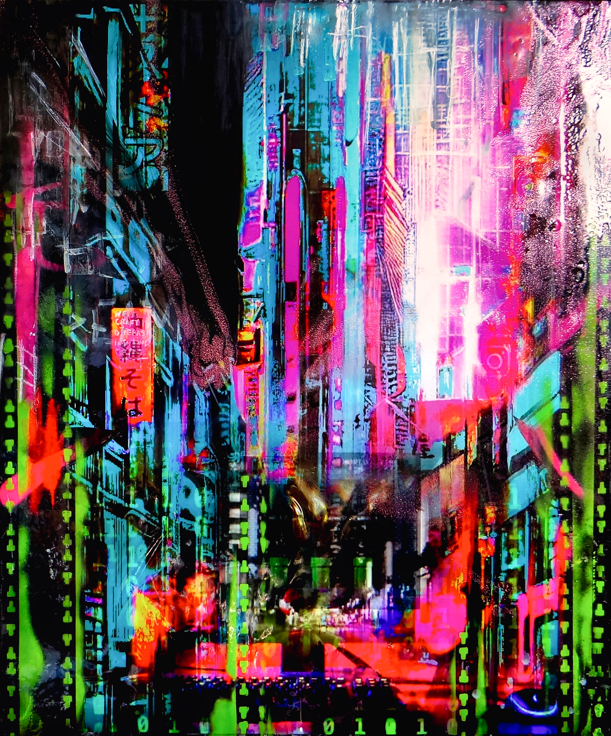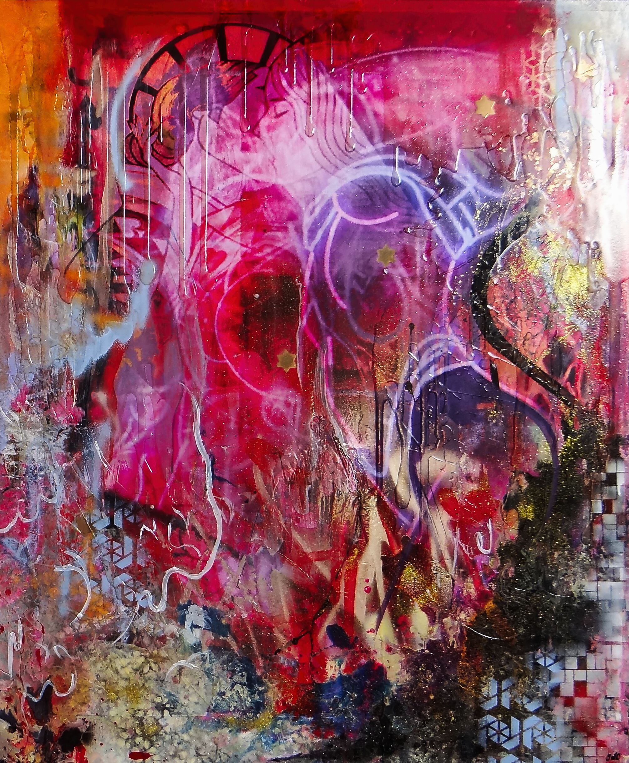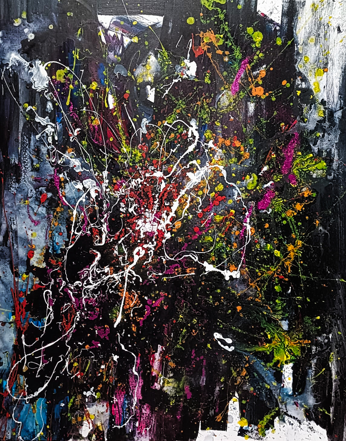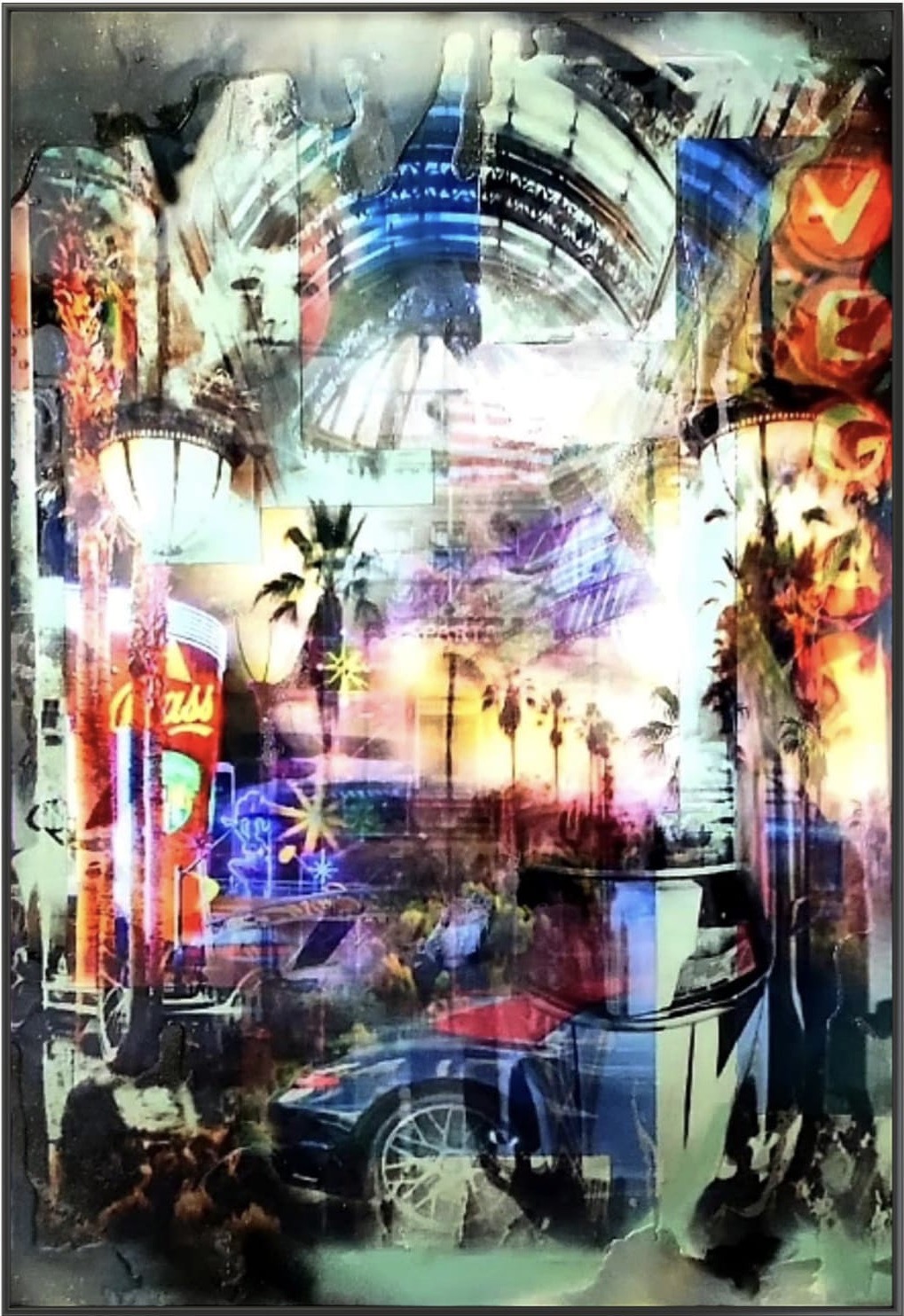 Jasper’s mixed media artworks examine the discovery of his own voice, a passage into the depth of figurative, abstract and collage along, with scribbles and graffiti, it is both modern and mythical. During our conversation, he explains the explorations of not thinking as he paints, listening to music and tapping into his self. There are synonyms in his reflection of city life and celebrity culture. As an artist who initially rejected his desire to follow his love of art, with all the practical assurances of having a normal job, conveyed to him by his father. He turned to study marketing and had a career in finance. His artworks only confirm his journey and his determination to live in the moment, his paintings’ configurations of what appears as the layering and ambiguities of society. The nuances of ordinary, capitalism, popular culture, and the subtext of relationships and sexualisation. Yet his work delves into the hidden depths of how I would visualise the conscience and unconscious at odds with each other, or the scenarios of trying to understand our dreams, the quandary of analysis in pictures. Jasper’s story as an artist, who took up the paint brush full time in 2019, and ended his permanent job, so he could feel the freedom to choose how to be in the moment and to control his own life. Whether it was spending more time with his children and doing something his heart desired. His paintings epitomise the social structures of our society and the role we all play in the subversive ideology, and how we accept it.